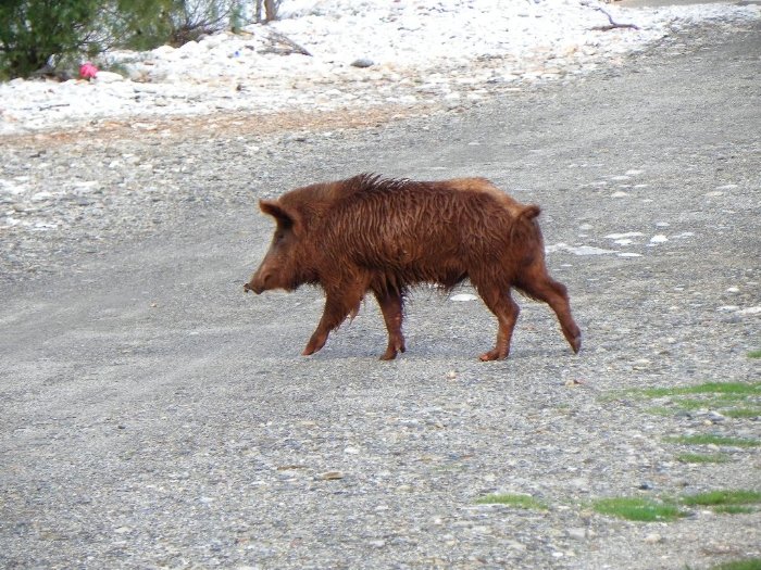 Wildschweinfamilie besucht uns am SP am Strand von Pirgos Dirou - der Keiler
