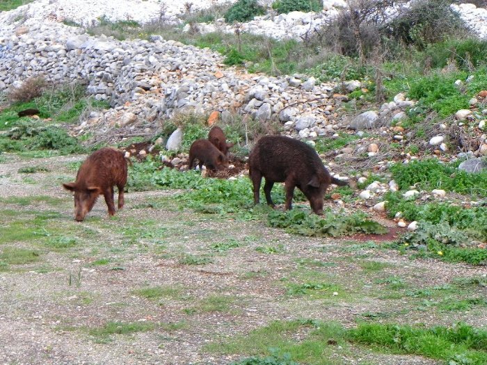 Wildschweinfamilie besucht uns am SP am Strand von Pirgos Dirou