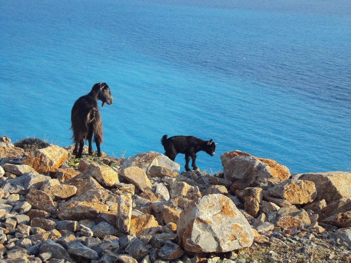 ... und Ziegenmama mit ihrem Zicklein am Abgrund