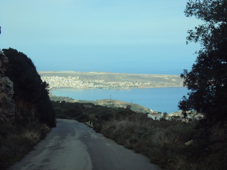 Von der Passstraße gesehen: Sitia an der Nordküste der Insel in Sicht
