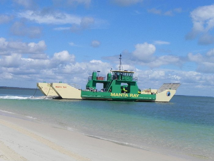 Strandwanderung am Inskip Point: Die Fähre zum Fraser Island