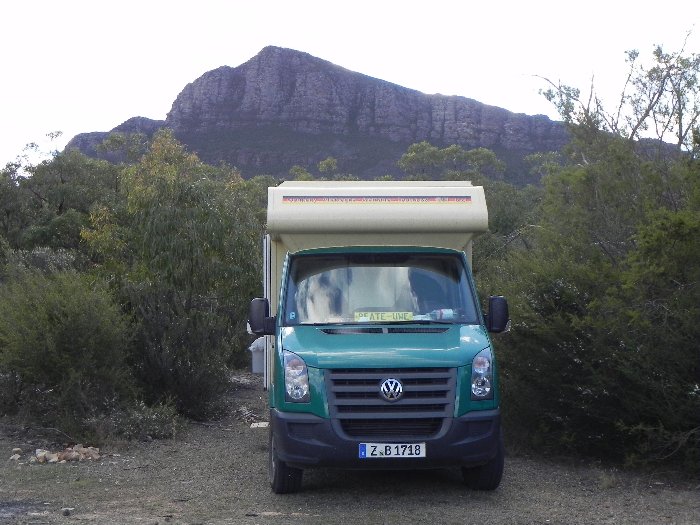 freier Übernachtungsplatz in den südl. Grampians m. Mt. Abrupt im Hintergrund