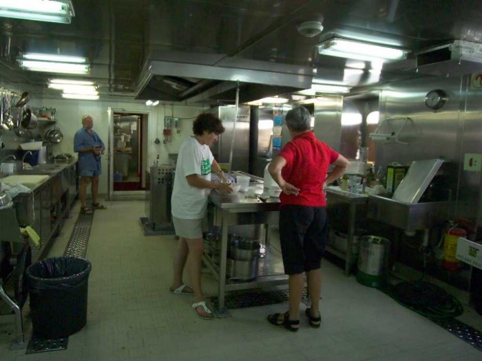 Äquatortaufe - Kuchenbacken in der Kombüse für die Feier