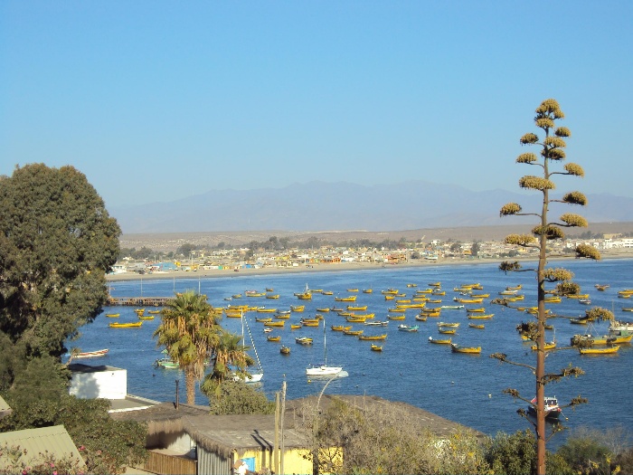 Blick in den Hafen und zum Strand von Tongoy