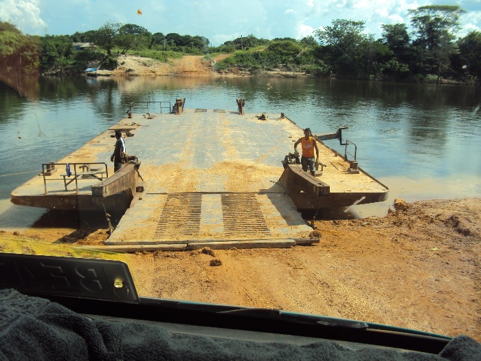 Eine kleine Fähre bringt uns über einen kleinen Flußlauf