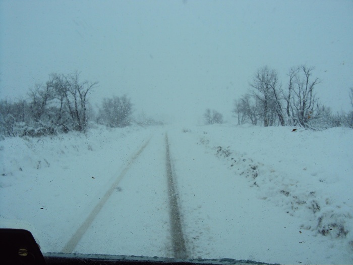 Verschneite Zufahrt zum Andenpaß nach Chile