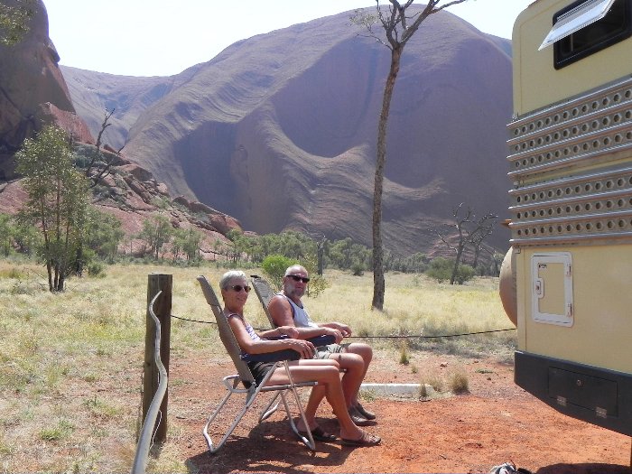 Parkplatz am Uluru-Umrundungs-Walk - Die Pause nach der Umrundung tut gut!