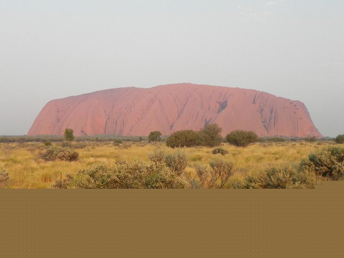 Blick auf den Uluru bei (ausgefallenem) Sonnenuntergang