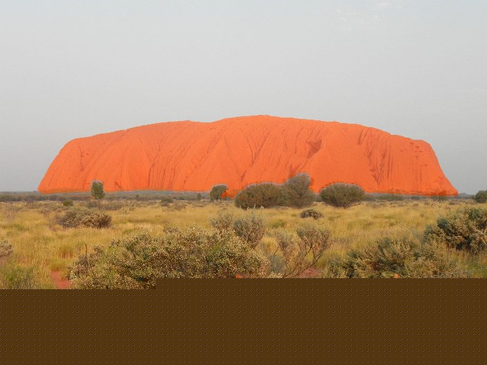 Blick auf den Uluru mit "Build in sunset" (dank Fotoshop)