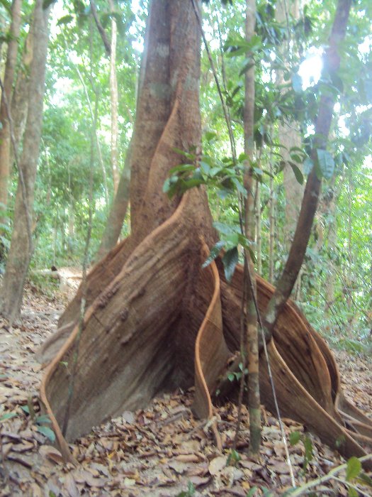 viele Baumriesen mit Brettwurzeln treffen wir hier an