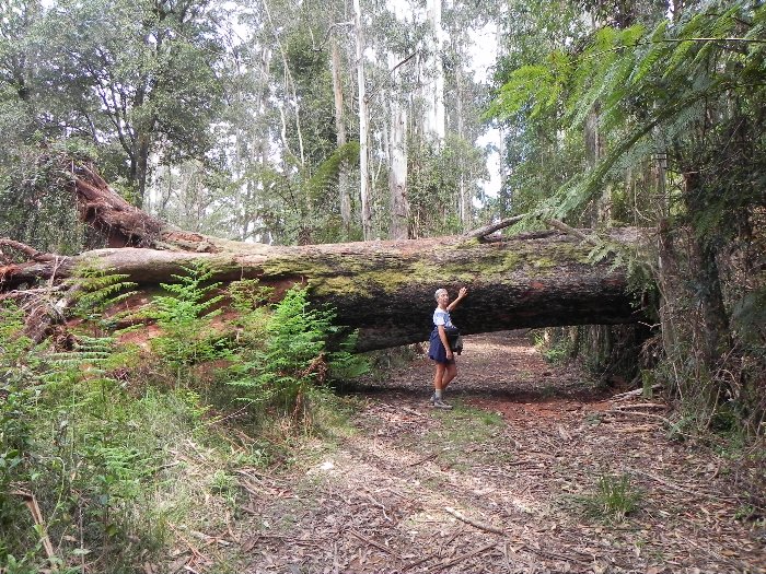 Ein Urwaldgigant liegt über dem Wanderweg durch den Gibraltar NP