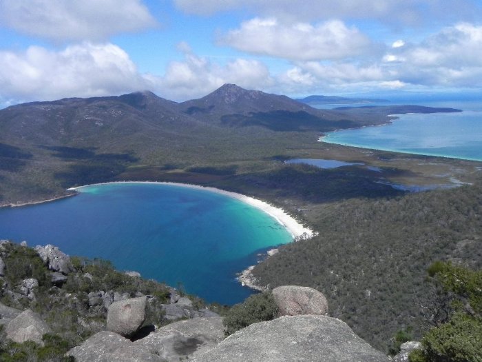 Freycinet NP - amTrail zum Mt. Amos - Blick in die Wineglass Bay