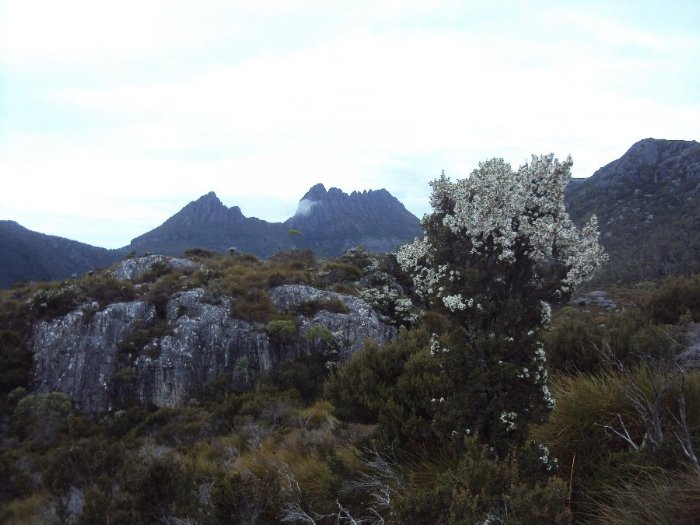 Cradle Mt. NP/ Walk zum Mt. Cradle - Beginn mit Ziel im Hintergrund