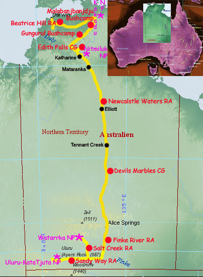 aufbauen). Anschließend nehmen wir die letzten 700 Km nach Darwin, an denen