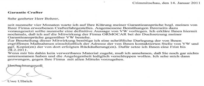 Informationen, schlechten Service und die Brauchbarkeit des Crafter etwas gemildert hätte. Da das aber offenbar nicht zu Optionen von VW