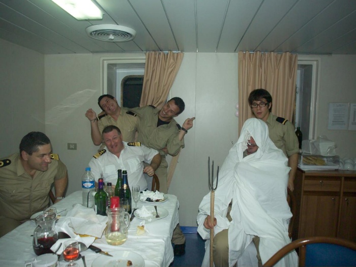 Äquatortaufe - Neptun, der Erste begeister auch die Mannschaft