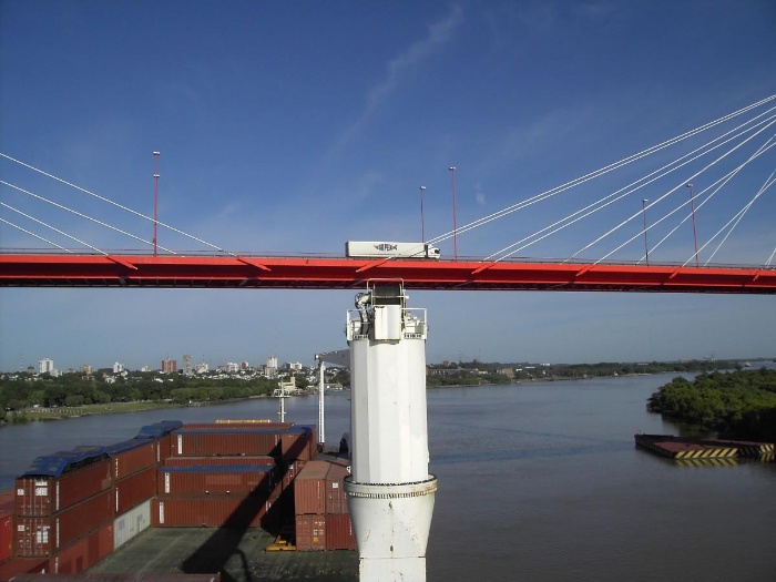 Kurz vor Zarate unterqueren wir die Brücke zwischen Argentinien und Uruquai