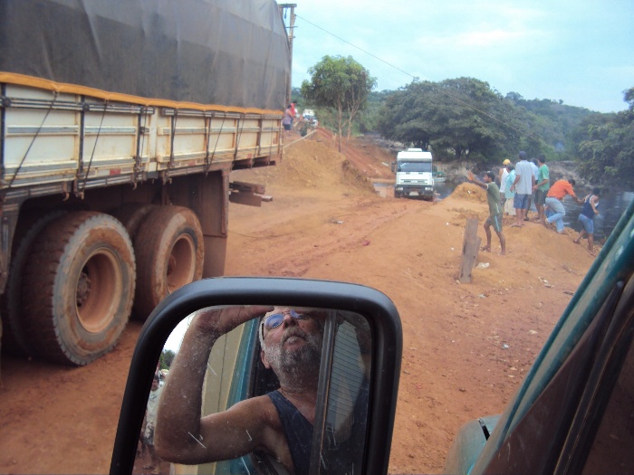 Nur mit gegenseitiger Hilfe schaffen die LKW´s den Weg von der Fähre zur Piste