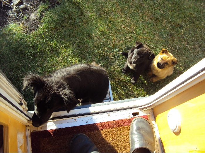 Eine Hündin mit ihren 2 Welpen hat uns adoptiert
