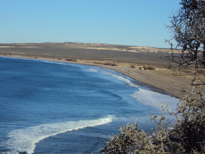 Übernachtungsplatz am Playa Doradillo/Pto. Madryn vom Punto Flecha gesehen