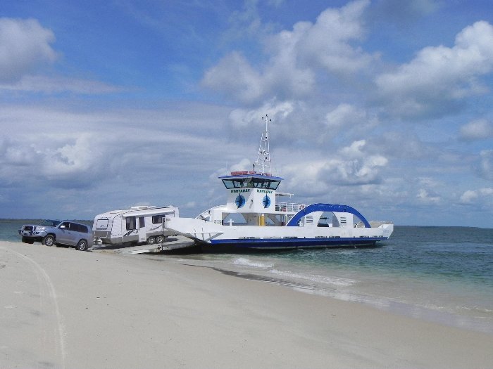 Man glaubt kaum, dass das gut geht - vorsichtig geht das Gespann von Bord