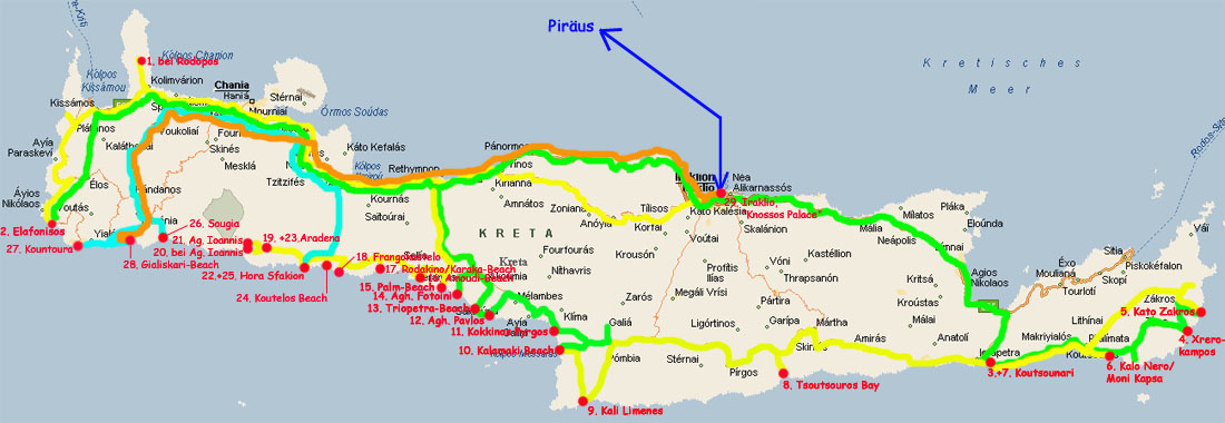 Kreta über, wo wir ein bis zwei Monate hauptsächlich an der Südküste verbringen