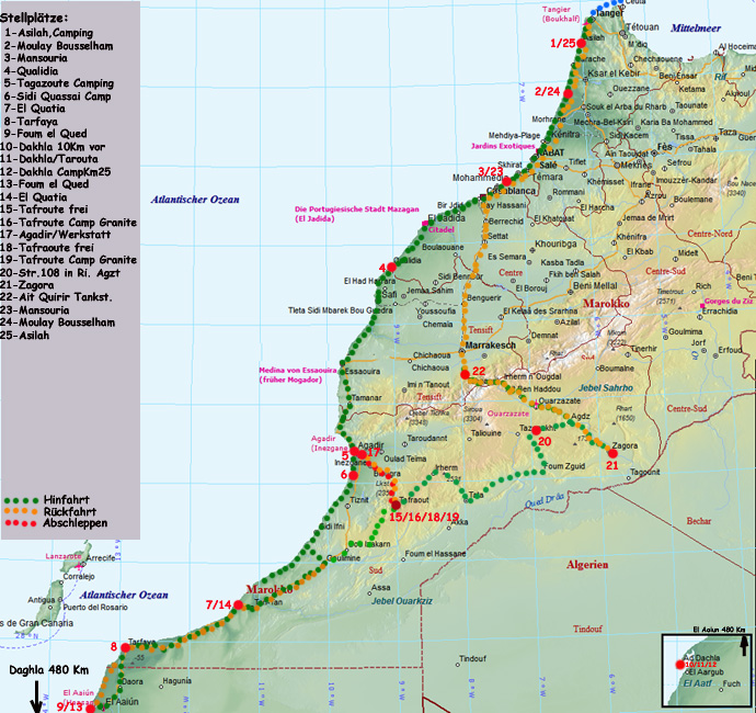 Atlantikküste bis in den tiefen Süden; dann ist Tafroute und Ait Mansur auf dem