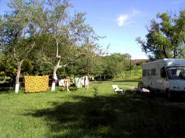 Wir erinnern uns, auf der Herfahrt kurz vor Jujuy, in dem Ort El Carmen, an einem schönen Campingplatz vorbeigekommen zu sein. Diesen wollen wir aufsuchen, um dort ein paar Tage zu bleiben. Es gibt viel zu tun - so am und im Auto, der Wäschekorb ist übervoll und das im Supermarkt erstandene Fleisch muß verarbeitet werden, außerdem muß auch wieder dunkles Brot gebacken werden. In Brasilien haben wir uns unterdessen auch noch mit Roggenmehl eingedeckt. Der Platz erweist sich als günstig - wir sind die einzigen Gäste, haben Wasseranschluß direkt neben dem Auto und Stromanschluß - und das alles für 8 Pesos. Außerdem gibt es einen schönen Pool - was will man mehr. Uwe ist froh, mal für Einige Zeit nicht mehr fahren zu müssen. Die letzten Wochen arteten fast in Streß aus. Er bastelt an seiner Internetseite, in der Hoffnung, diese Änderungen im nächsten Internetcafe auch ins Netz zu bringen. Für mich sind die Tage mit Wäschewaschen ausgebucht. Am Wochenende kommen einige Tagesgäste zum Picknick auf den Platz - es sind fast ausschließlich Indios.Viele sind neugierig und interessieren sich für unser Auto - so kommen wir mit Einigen in Kontakt und wir versuchen, uns mit unseren wenigen Brocken spanisch mit ihnen zu unterhalten. Da bedauern wir dann, nicht mehr für unsere Spanischkenntnisse getan zu haben.