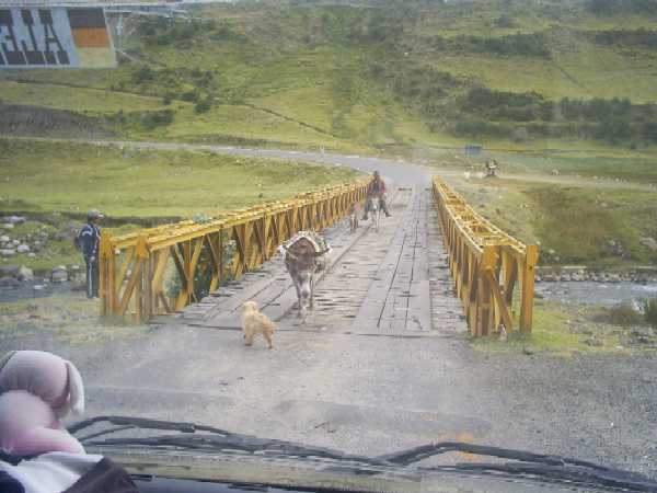 - Alles ist auf den Beinen. Wir verlassen die Küstengegend und wollen noch einmal in die Berge. Es geht ein Flußtal aufwärts, über einen Paß 4100 m - durch eine schöne Hochebene mit vielen verschiedenen Herden - hier gefällt es uns besser. Abends landen wir in dem kleinen Städtchen Catac, welches wir durchfahren und dahinter einen schönen Platz finden. Wir finden leider keine Ruhe, Einwohner des Ortes wollen uns in den Ort lotsen, sie meinen, hier wären wir nicht sicher vor Räuberbanden (möglich, daß sie uns nur irgendwo gewinnbringend einquartieren wollten). Irgendwie wirkt es aber - also ziehen wir später doch noch einmal um und suchen uns einen Platz näher am Wohngebiet. |