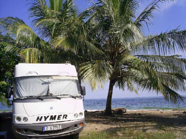 Ein Großeinkauf im Supermarkt steht an, denn wir wollen den paradiesischen Platz hier an der Karibik noch nicht verlassen. Also - zurück nach Puerto Limon - dort gibt es alles was wir brauchen. Lebensmittel im Supermarkt, Gas und Wasser an der Tankstelle. Erst am Abend sind wir wieder an unserem Platz. 10.08.2006 - 13.08.2006 - Inzwischen haben wir uns einigermaßen an die schwülwarme Witterung gewöhnt. Da hier zur Zeit die Regenzeit ist, gibt es auch fast täglich ein kleines Gewitter. Bei einem unserer Strandspaziergänge (Bild) entdecken wir in den Bäumen direkt am Strand eine Affenfamilie - sonst gibt es nicht viel Neues - abends wird wieder einmal gegrillt - haben uns in Limon ordentlich mit Fleisch eingedeckt. Celina, Lorenzo und Axel verabschieden sich von uns mit dem Versprechen unsererseits, uns im nächsten Jahr, wenn wir uns Quebec (Kanada) nähern, bei ihnen zu melden. Da wir uns hier wie auf einem Campingplatz fühlen, werden wir faul und leichtsinnig, lassen über Nacht Einiges vor dem Mobil stehen und werden so für unseren Leichtsinn bestraft. Glücklicherweise fehlen nur meine Badesandaletten und der stehengebliebene Hocker. Unseren Grill hat man stehen gelassen - da können wir nur froh sein. Was sagt uns das - am Abend alles rein ins Auto. Es ist jedoch das erste Mal auf unserer bisherigen 10-monatigen Tour, daß man uns bestohlen hat. Anderen erging es schlechter. Aber wie gesagt, Gelegenheit macht Diebe. |