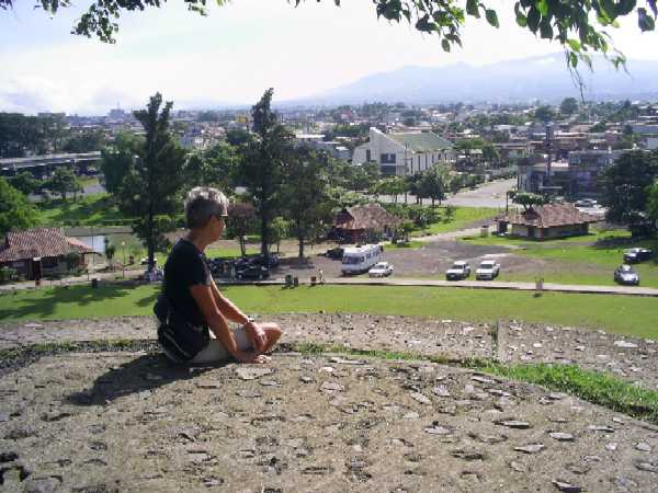 17.08.2006 - Wir bringen unser Auto zur Reparatur. Jetzt stellt sich heraus, daß man unseren Wunsch nach einem neuen Zahnriemen nicht verstanden hat und nur den Keilriemen wechseln will (deshalb auch der sehr mäßige Kostenvoranschlag von 100 $!).Uwe ist etwas enttäuscht und will auch auf den Keilriemen verzichten. Die Reparatur soll mindestens zwei Stunden dauern - also machen wir uns so lange aus dem Staube. Als wir wiederkommen, ist die abgebrochene Schraube immer noch drin (man sieht aber, daß man sich redlich gemüht hat). Außerdem ist man gerade dabei, den Zahnriemen zu wechseln (!). Die Reparatur zieht sich. Wir sitzen im Auto und registrieren die vielen vergeblichen Versuche, die Schraube herauszubekommen (in Deutschland hätten sie längst die ganze Nabe gewechselt). Nach ca. weiteren 5 Stunden ist unser Auto fertig: Die Schraube ist 'raus (man hat aber leider keine neue, denn Fiat Dukato Maxi gibt es hier nicht), der Zahnriemen und der Keilriemen samt Spannrollen neu und unsere (angelieferten) Bremsscheiben und -pads drin. Uwe rechnet mit mindestens 400 $ (nach deutschem Maßstab ist das noch viel zu wenig). Als wir die Rechnung erhalten, haut es uns um: 207 $ !!! Wir sind glücklich und bedanken uns überschwänglich. Der Meister ist es auch, weil wir wg. der fehlenden Schraube kein Theater machen. Das Bild stammt eigentlich vom 18., an dem wir vor der Weiterfahrt in einem Erholungspark von San Jose spazieren gegangen sind. |