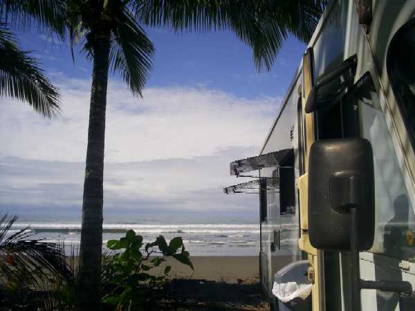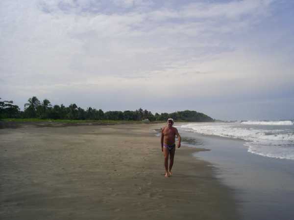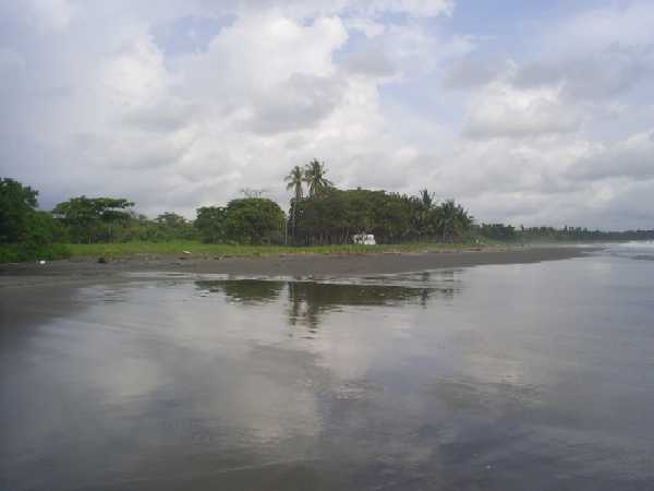Weiter geht es vorläufig auf der Panam bis San Isidre, dort ändern wir unsere Richtung und biegen ab zur Küste. Die Pazifikküste mit ihren schönen Stränden ist unser Ziel. Dort beabsichtigen wir, noch ein paar schöne Tage zu verbringen. Die Suche nach dem legendären Playa Hermosa stellt sich jedoch vorläufig als Fehlschlag heraus. Mit unserem Mobil ist dort nichts zu machen, man kommt nur über schmale schlammige Pfade zum Strand. So erledigen wir in Dominical wichtige Anliegen im Internetcafe, dann gehen wir erneut auf Suche nach einem schönen Stellplatz am Strand. Von Dominical fahren wir auf der Ruta 34, die hier erst einmal zur Piste wird, wieder in Richtung Norden bis Quepos - dort gefällt es uns auch nicht. So landen wir am Abend in Rio, es wird bald dunkel, der Platz für die Nacht muß gefunden sein. Ein Schild "Centro Touristiko" weckt Hoffnungen und bewegt uns dazu, einmal in den kleinen Ort hineinzufahren. Wir finden hier zwar nur am Ende der Straße nur eine geschlossene Gaststätte mit diesem Namen - aber daneben einen schönen und ruhigen Stellplatz für die Nacht an einer breiten Flußmündung. |