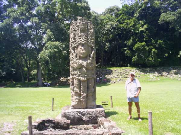 Der Besuch von "Tikal" - ein Beitrag für unsere kulturelle Bildung - nimmt den ganzen Tag in Anspruch. Die Ruinenstätte liegt mitten im Urwaldgelände verstreut, d.h. über verschlungene Pfade durch den Wald mit exotischen Vögeln und anderen Tieren gelangt man zu den alten Tempeln, Plätzen und Palästen (zusammen ca. 3 Std Fußmarsch - tat uns nicht sehr gut, deshalb wieder einmal sehr nötig!). Wir können uns nur wundern, was diese Menschen mit ihren primitiven Mitteln zustande gebracht haben. Am Nachmittag erreichen wir völlig geschafft und verschwitzt unser Mobil und freuen uns auf einen kühlen Trunk. Zurück geht es zum Platz am See. |