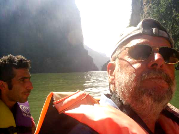 Morgens sollen die besten Fahrten sein. Deshalb gehen wir gleich nach dem Frühstück an der Anlegestelle auf "Ansitz". Nach längerem Warten dürfen wir als Lückenbüßer mit einer Reisegruppe einsteigen und ergattern auf der 2. Bank aussichtsreiche Plätze. Dann geht es los: Mit mindestens 40 Sachen brettern wir durch den Canon. Vorn wird man ganz schön durchgeschüttelt. Trotz der Rüttelei sind die bis 1000 m hohen, engen Schluchtwände ein beeindruckendes Bild. Von einer Stelle sollen sich über 2000 Mayas herabgestürzt haben, um der spanischen Sklaverei zu entgehen. Zum ersten Mal verlangsamt sich die Fahrt, wir können einen besonders hohen, von Geiern umschwebten Felsen bewundern. Dann hält der Bootsführer, weil er ein Krokodil entdeckt hat. Und tatsächlich: Ein mehrere Meter langes Krokodil versucht sich vergeblich, unter schwimmendem Plastikmüll zu verbergen. Wahrlich, solche "Naturerlebnisse" hat man im Zoo nicht! Weitere Sehenswürdigkeiten sind der "Tannenbaum". Ein grün bemosstes Gebilde aus Sinterlappen, das tatsächlich auf den ersten Blick einer Hochgebirgsfichte mit den hängenden Zweigen ähnelt und natürlich eine Höhle mit einer kleinen Kapelle. - Und schon sind wir auf dem angrenzenden Stausee am Damm und das Boot wendet. Auf der Rückfahrt weitere Highlights: Hoch in den Bäumen zwei Brüllaffen, die vor Angst still sind, ein Iguana (Leguan) sitzt Modell. Außerdem sind von einem zweiten Krokodil die Augen zu sehen. Das war's - wir brettern zurück. Unsere Abneigung gegen solche touristische Veranstaltung ist wieder gestärkt; wir werden das künftig den Pauschaltouristen überlassen und unsere Naturerlebnisse selbst suchen. - PS: Was über 40000 km auf teilweise sehr ruppigen Straßen nicht geschafft haben, erreichten die anderthalb Stunden Bootsfahrt: Uwe's Bandscheibe muckert! |