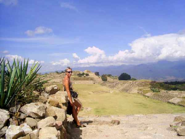 Heute steht schon wieder eine Ruinenbesichtigung auf der Tagesordnung - diesmal die größte und schönste aller Zapoteken-Stätten. Auf einer Höhe von knapp 2000 m - von hier oben beherrschten die alten Zapotekenfürsten nicht nur das Tal von Oaxaca, sondern auf dem Höhepunkt ihrer Macht, das ganze südwestliche Mexiko. Auf dem Rundgang durch Monte Alban waren wir fast allein - die uns lästig vorkommenden kleinen Händler waren in der Überzahl, so daß sie sich auf uns nur so stürtzten. Trotzdem konnten wir das als UNESCO-Weltkulturerbe ernannte Monte Alban in Ruhe auf uns einwirken lassen. Nach der anschließenden Besichtigung des kleinen Museums am Eingang und einer längeren Kaffeepause fuhren wir über Oaxace hinaus bis auf eine Tankstelle vor dem Örtchen Altayuco an der MEX 190. |