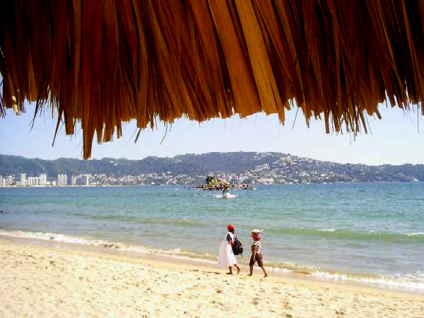 23.11.2006 - Wir haben beschlossen, zunächst zu versuchen, einen Generator in Acapulco aufzutreiben. Die Fahrerei mit öffentlichen Verkehrsmitteln ist für uns so ungewohnt und stressig, daß uns davor graut, aber es muß sein. Mehrere Taxen müssen wir bemühen, mehrere große Autohäuser fahren wir an, überall werden wir nur weitergereicht, man kann uns nicht helfen. Dann gelangen wir in eine Straße mit vielen kleinen Shops für Autoersatzteile. Mit nur wenig Hoffnung fragen wir dort. Beim zweiten Anlauf finden wir einen Verkäufer, welcher sich unserer Sorgen annimmt. Lange warten wir, bis er aus seinem Lager mit einem Generator zurückkommt, welcher unserem sehr ähnlich ist. Es wird noch etwas daran herumgebastelt, die elektrischen Anschlüsse für uns vorbereitet und die Riemenscheibe wird noch gewechselt, freudig bezahlen wir, nicht so viel womit wir gerechnet hatten. Nun machen uns auf den Weg, die neue und alte Lichtmaschine schleppend - dafür aber überglücklich. Ein Snack am Strand von Acapulco (Bild) beendet den Aufenthalt in der Stadt, welche uns übrigens sehr gefällt. |