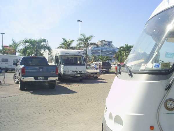 Wir nähern uns heute einem der größten Hafenstädte und Urlaubsparadiese Mexikos - Puerto Vallarta, welches nur so von Amerikanern wimmelt. Die Strände sind voll im Besitz der großen Hotels und Urlaubsdomizile. Hier werden wir wohl keinen Stellplatz finden. So versuchen wir so schnell als möglich durch die Großstadt zu kommen. Nur den großen Supermarkt "Wal*Mart" steuern wir noch an, denn unsere Vorräte sind so gut wie aufgebraucht. Wir stellen unser Mobil ab und verbringen einige Zeit im wohl temperierten Markt. Wieder zurück auf den Parkplatz stellen wir fest, daß unser Hymer Gesellschaft bekommen hat. 3 weitere Hymer haben sich dazugestellt (Bild). Uwe unterhält sich mit einem der Besitzer und erfährt, daß sie zu einer geführten Reisegruppe von "Seabridge" aus Deutschland gehören, welche die USA und Mexiko bereist. Wir ziehen weiter und finden etwa 60 km hinter Puerto Vallarta Schilder, welche zu 2 Playas führen. Denen folgend fahren wir durch Lo de Marcos. Im Ort gibt es zahlreiche Trailerparks, welche voll von großen Ami-Wohnmobilen sind, dort geht es vorbei bis zum letzen Playa. Ein Stellplatz über dem Strand in einer kleinen Bucht läßt uns anhalten. Direkt über der Abbruchkante stellen wir unser Auto ab und geniesen am Abend noch den Sonnenuntergang. Dann wird es schnell dunkel und wir verschwinden im Wohnmobil. Von einem Lichtschein und Rascheln werde ich im ersten Schlaf geweckt, ich hebe den Kopf und mir wird fast schlecht, denn am Fenster sehe ich eine schwarze Gestalt. Jetzt hat es uns doch noch einmal erwischt denke ich. Ich schaue genauer nach und erkenne eine männliche Person, in der linken Hand eine Taschenlampe und in der rechten einen großen Schießprügel und wir haben das Fenster ganz offen stehen, nur die Fliegengaze trennt uns von der Person. Der Vollmond läßt mich nun die Aufschrift auf dem Overall "POLICE" erkennen. Nun atme ich auf und wecke Uwe, welcher immer noch friedlich schlummert. Als die Person zurückkommt und wieder am Fenster steht hören wir "Buenos Noches - Problemas ?" - Uwe: "Buenos Noches - no Problem - gracias!!" Er ist zufrieden und er verschwindet in der Nacht. Wir versuchen wieder einzuschlafen. Es dauert jedoch nicht lange, hören wir es knallen. Es klingt tatsächlich wie Schüsse - wie in einem Krimi - und wir mittendrin - jetzt springen wir auf, schließen nun doch mal unser Fenster und schauen nach. Unten am Strand entdecken wir wieder 2 Gestalten mit Taschenlampe, die mit irgendwelchen Knallen herumballern - wahrscheinlich nichts Ernsthaftes. Wir warten, bis sie sich vom Strand entfernen und mit einem Wagen abfahren - nun können wir doch noch den Rest der Nacht in Ruhe verbringen. Ein ereignisreicher Tag. Wir staunen über die besorgte Polizei von Mexiko. Es ist nicht das erste Mal, daß man uns unterwegs fragt, ob wir irgendwelche Probleme hätten. |