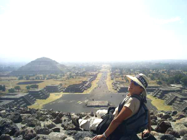 Mit ein paar Irrtümern auf dem Weg erreichen wir endlich das Ausgrabungsgelände Teotihuacan. Es wird für uns ein krönender Abschluß auf diesem Gebiet. Teotihuacan mit der gewaltigen Sonnen- und Mondpyramide (UNESCO-Kulturerbe) auf 2500 m Höhe bei herrlichem Wetter zu besichtigen, ist schon etwas Besonderes. Das Besteigen der Pyramiden (Bild) und der Rundgang auf dem 4 qkm großem Gelände tun unseren fast schon eingerosteten Knochen doch ganz gut. Wir verbringen etliche Stunden im Gelände. Nach einer kurzen Pause, müssen wir jedoch weiter, denn es ist schon reichlich spät und ein Platz für die Nacht ist noch nicht in Sicht. Die Fahrt geht nun wieder nordwärts. Wir kommen bis Zempoala - wieder ein kleiner Ort, da man hier am besten die Nacht verbringen kann. |