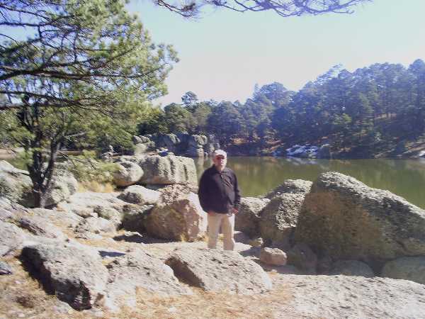 Mit Schnee auf dem Auto und der Straße werden wir am Morgen überrascht. Da es hier keinen Winterdienst gibt, warten wir lieber mit unserer Weiterfahrt, auf daß die Sonne den Straßendienst verrichtet hat. Dann fahren wir noch die restlichen 30 km bis Creel, hier wollen wir nächsten Tage mit etwas Wandern, Faulenzen und zum Schlemmen verbringen. Hier ist das letzte ursprünglich lebende Volk Nordmexikos - die Tarahumara - zu Hause. Sie begegnen uns überall. Die Frauen und Mädchen wieder traditionell in bunten Kleidern mit weiten mehrfach übereinander getragenen Röcken. Zum Schutz vor der Kälte wird ein buntes Wolltuch übergeworfen. Kleinkinder werden im Tuch auf dem Rücken getragen. Am Nordufer des Lago Arareko - ausgestattet als einfaches Camp und Picknickplatz finden wir einen schönen Platz - Schnee und Kälte, fast wie zu Haus. Nun geht es an die Vorbereitungen zum Heilig-Abend-Schmaus. |