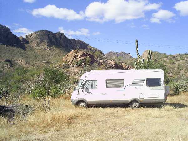 Etwa 10 km hinter Sta. Rosalia finden wir eine Gastankstelle und lassen unsere Flasche füllen. Anschließend fahren wir bis zur |