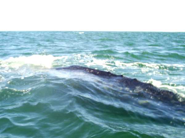 Laguna Ojo de Libre, hier sollen sich z.Zeit tausende von Walen aufhalten, auf welche wir es absehen haben, hier muß es endlich klappen. Die Tiere machen sich im Januar von Kanada auf und gehen auf Wanderschaft bis hierher nach Mexiko. Hier bekommen die Walkühe ihren Jungen und sind gleich wieder paarungsbereit. Für die neu Geborenen ist das Wasser hier wärmer und durch den hohen Salzgehalt haben die Jungen mehr Auftrieb. Sind sie dann stark genug, geht es gemeinsam zurück nach dem Kalten Norden bis die nächste Generation herangewachsen ist. Nach ca. 30 km Piste, einen Eintritt von 55 Pesos stehen wir mit noch einem Traveller auf einen sehr großen Camp direkt am Ufer der Lagune. Ein wunderschöne Platz, von welchem wir am zweiten Tag mit dem Fernglas viele Wale beobachten können. Leider sieht man von weitem nur die Wasserfontänen und ab und zu einen Rücken. Eine kleine Wanderung an der Küste und dann machen wir uns bereit für eine Bootsfahrt. Wir lösen unser Ticket, erhalten je eine schöne orangenfarbene Schwimmweste und auf geht es mit etlichen amerikanischen Touristen zu den 2 bereitstehenden Booten. Tiefste Ebbe zwingt uns, Schuhe und Strümpfe auzuziehen und zum Boot zu waten. Der Landesteg ist einfach zu kurz. Aber was soll´s - wir freuen uns, daß es endlich losgehen soll. In schneller Fahrt geht es hinaus. Unser Skipper versteht sein Handwerk - er bringt uns behutsam mitten ins Geschehen. Amerikanische und unsere deutschen Begeisterungsrufe, die Fotoapparate und Uwe Kamera laufen auf Hochtuoren. Es ist fantastisch, die Tiere kommen direkt ans Boot heran, mal tauchen sie rechts vom Boot mal links auf. Schwanzflossen klatschen auf´s Wasser oder sie recken ihren riesigen Kopf bis 2 m aus dem Wasser. Die Rücken der mächtigen Tiere sind mit vielen Muscheln besetzt, man kann sie fast streicheln. Nach ca. 1 Stunde geht es wieder zurück zur Station. Ein bißchen verfroren erreichen wir nach einem kurzen Fußmarsch wieder unseren interessantesten Stellplatz bisher. |