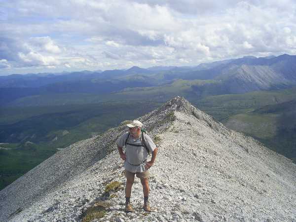 Bevor es wieder auf die Straße geht, noch eine letzte Aktion zum Wohlergehen unseres Mobils, es soll wieder gut atmen können - ein neuer Luftfilter ist schon lange fällig. So geht es dann immer weiter in die Bergwelt der Rocky´s. Eine Wanderung am Weg, vom Summit Pass im Summit Lake Provincialpark zum Gipfel des Summit Peak (ca. 750 Höhenmeter auf 2,5 km). Wir müssen uns schon ein bißchen zwingen, man wird träge, wenn tagelang mehr oder weniger nur im Auto die Landschaft genießt. Es geht auch nur langsam voran, ein verdammt steiler Aufstieg - 20 Schritte vorwärts, 5 min. Pause. Wir benötigen für Auf- und Abstieg und Pause am Gipfel ca. 5 Stunden. Aber der Weg auf dem Grat (Bild) entlang ist grandios - ein wunderschöner Ausblick nach beiden Seiten. Für den Abend und die Nacht suchen wir uns einen Platz an der Strecke.