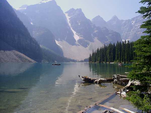Auch weiterhin bleibt die Fahrt durch die Parks ein Erlebnis - einmalig die Landschaft, wirklich eine Höhepunkt unserer gesamten Reise - so müssen wir feststellen. Den Besuch am Lake Luise müssen wir verschieben - keine Ecke auf dem Parkplatz ist frei, ja es ist eben Hochsaison. Aus Ausgleich fahren wir einen nicht weniger schönen See - den idyllisch gelegenen Moraine Lake (Bild) - an. Doch der Besucherandrang hier ist uns doch zu viel, oft geht es nur in Stop-and-go, nichts für Uwe und Beate. Wir ziehen erst mal weiter. Unterwegs - hinaus aus den Parks, kommen wir noch an vielen türkisgrünen Seen und rasten an ebenso türkisgrünen Flüssen auf Picknickplätzen. Bei einer solchen Rast entdecken wir am gegenüberliegenden Ufer sogar eine Wildkatze, nach einer Beschreibung der Tierwelt in einer Mountain-Guide-Zeitschrift muß es ein Cougar gewesen sein. So ein bißchen tut es schon leid, dieses Gebiet zu verlassen, aber wir haben vor, hierher nochmal zurückzukommen. Erst müssen wir wissen, ob wir noch einmal eine Einreise in die USA bekommen, u m unsere Reise in Baltimore beenden zu können. Wir kommen noch recht weit in Richtung Grenze nach Idaho. Am Ufer des Kootenay-River finden wir unser heutiges Zuhause.