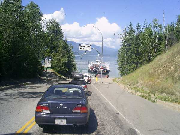 Wir fahren nicht weit hinein nach Idaho - nur um etwas einzukaufen und preiswerter zu tanken, dann geht es zurück nach Kanada. Wir suchen uns eine schöne Strecke heraus. Immer geht es entlang an schönen Seen. Mit der Fähre (Bild) überqueren wir den Kootenay-Lake und suchen so nebenbei einen Stellplatz. Das wird hier zum Problem. Zugänge zum schönen See gibt es kaum, Campingplätze auch nur wenig, das Gebiet ist dicht besiedelt. Die Ufer am Wasser sind entweder nicht passierbar oder von Anwesen besetzt. Was soll´s - so gibt es eben keinen Aufenthalt hier bis zum Abend, wo wir unser müdes Haupt wieder einmal in einem Forstweg weit abseits vom nächsten Dorf niederlegen werden.