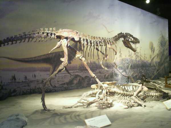 Mit einer der letzten alten Kabelfähren Kanadas überqueren wir den Red Deer River und gelangen nach kurzer Zeit zum berühmten schon erwähnten Museum (offiziell "Royal Tyrrell Museum"). Unsere Erwartungen an diese einmalige Ausstellung sind weit übertroffen worden. Es gewährt einen Einblick in die Entwicklung des Lebens auf der Erde über alle Erdzeitalter, belegt mit Funden aus aller Welt und mit Rekonstruktionen, Nachbildungen und sehr anschaulichen Bildern erläutert. Ganz besonders detailliert ist natürlich Alles, was die Dinos anbetrifft und vor Allem mit vielen Funden von hier belegt (Bild). Die Weiterfahrt geht entlang des Dino-Trails, dann dem Hoo Doo Trail ("Hoo Doo" nennt man hier die Verwitterungserscheinung, wo ein widerstandsfähiger Sein die Verwitterung des Sandsteines unter sich verhindert hat und nun auf einer Sandsteinspitze balanciert) bis kurz vor dem Dinosaurier-Provinc-Park. Wir suchen uns jedoch noch davor einen Stellplatz für die Nacht und finden diesen mitten in der Prärie.