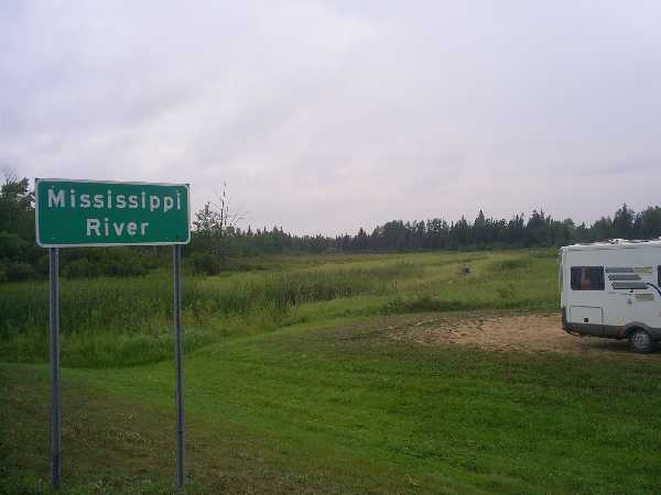 Immer entlang der Straße 200 kommen wir am kleinen Quellbach des Missisipi River (Bild - wäre ohne Schild nicht erkennbar) vorüber. Wir sitzen mehr oder weniger immer nur in unserem Mobil und landen am Abend auf dem Campground Mabel Lake kurz vor dem Ort Remer.