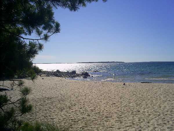 Am südlichsten Punkt der Insel finden wir den kleinen Ort Province Bay mit dem größten Sandstrand der Insel. Wir verbringen dort den größten Teil des Tages, freuen uns über das schöne sommerliche Wetter und machen auf "Lustiges Strandleben". Obwohl sich mutige Kanadier in die kalten Fluten stürtzen, bleiben wir lieber auf unseren Stühlen sitzen oder wandern am Strand entlang. Wir sind von den Wassertemperaturen der Karibischen See oder den Thermalbädern etwas verwöhnt. Zudem weht eine frische Briese über den Huron Lake. Als Nachquartier suchen wir wieder unseren bekannten Stellplatz am Ice Lake auf.