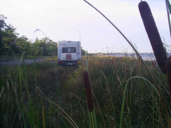 Wir wollen noch bis zum Ende der Insel, also zur einsamen Westküste fahren. Dort erwartet uns ein alter Leuchtturm mit kleinem Museum und eine felsige Küste - es sieht hier fast wiean der Kroatischen Adria aus -nur ist das schöne klare Wasser süß. Entlang der zerklüfteten Kalksteinküste unternehmen wir eine längere Wanderung. Auf der Weiterfahrt finden wir bei Evansville am Lake Wosley wieder einmal einen Stellplatz ganz nach unserem Geschmack, d.h. zum ersten am Wasser - "erste Reihe" und zum Nulltarif. (Bild)