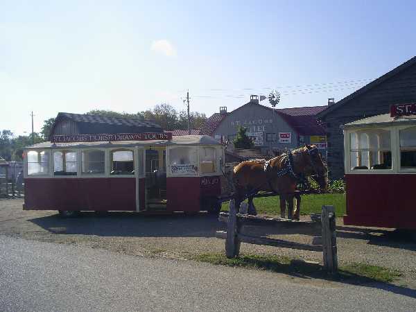 St. Jacobs soll das Zentrum der dort noch streng nach ihrem Glauben lebenden Menoniten, einst eingewandert aus Europa, sein. In diversen Unterlagen lesen wir, man begegnet hier den Einwohnern gekleidet nach ihrer strengen Vorschrift, Frauen mit dunklen wadenlangen Kleidern und weißen Häubchen, die Männer mit schwarzer Hose und blauen Hemden und Hosenträgern. Man lehnt jeden Fortschritt ab, fährt noch mit Pferdekutsche und bestellt das Feld mit dem Ackergaul. Wir sind gespannt. Noch vor St. Jacobs begegnen wir der ersten Pferdekutsche - ähnlich derer in einer Fernseh-Auto-Reklame (Ihr erinnert Euch vielleicht). Auf einem Schulhof tummeln sich Mädchen und Jungen, wir fühlen uns in die 40er Jahre des vergangenen Jahrhunderts zurückversetzt. Wir hoffen nun auf Mehr in St. Jacobs - werden jedoch enttäuscht. Hier hat der Tourismus alles in der Hand. Autos verstopfen fast den kleinen Ort und von Menoniten keine Spur. Wir wollen weiterfahren und treffen auf einen deutschstämmigen Kanadier, welcher uns den o.g. P zum Übernachten empfiehlt und meint, daß der für den nächsten Tag zu erwartende große Markttag in "Jacobsstädt´l" nicht versäumt werden dürfe. Wir folgen seinem Rat, bleiben hier, schlendern noch ein bißchen durch das Dorf.