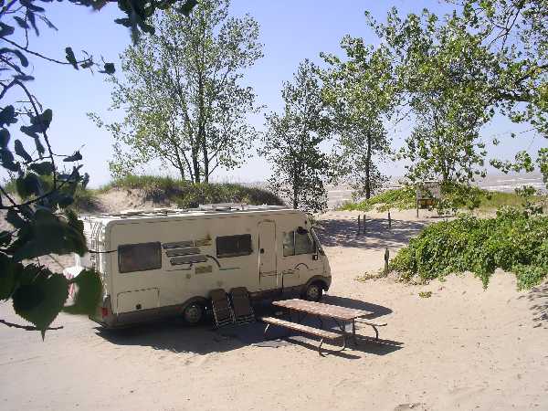 Wir reisen weiter zunächst nach Süden zum Eriesee. Dort, auf einem Campground im Povincpark "Long Point", finden wir direkt hinter der Düne eine schöne Campsite (Bild) und fühlen uns hier wie am großen Meer. Der Sonnenschein verlockt zu einen Strandspaziergang... .